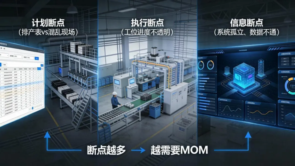从艾科斯幂的项目经验来看,一家企业是否需要MOM,有一个非常直观的判断方式:你们在关键流程中有多少“断点”?最典型的三类断点包括: