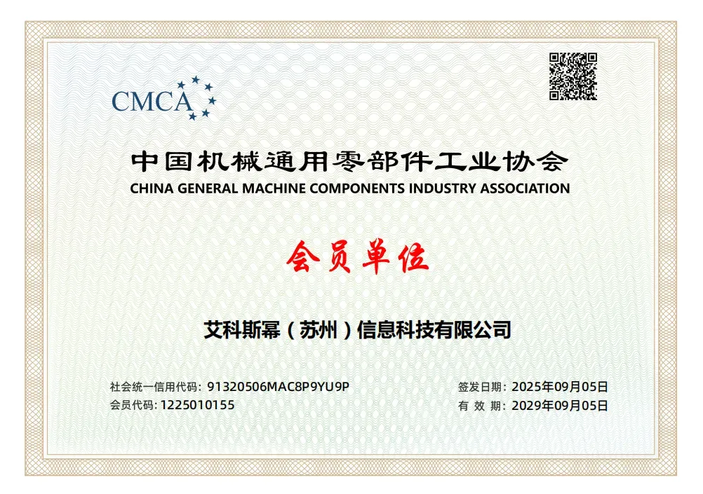 艾科斯幂成为“中国机械通用零部件工业协会会员单位”并入列“紧固件分会理事单位”,承担行业发展与治理的重要使命。